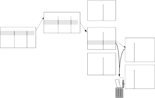 如果删除操作删除了数据页的最后一行,该页将重新分配并且相邻页的 指针也将在所有页锁定表中进行调整。该页的所有引用也将在索引的较 高级别中删除。